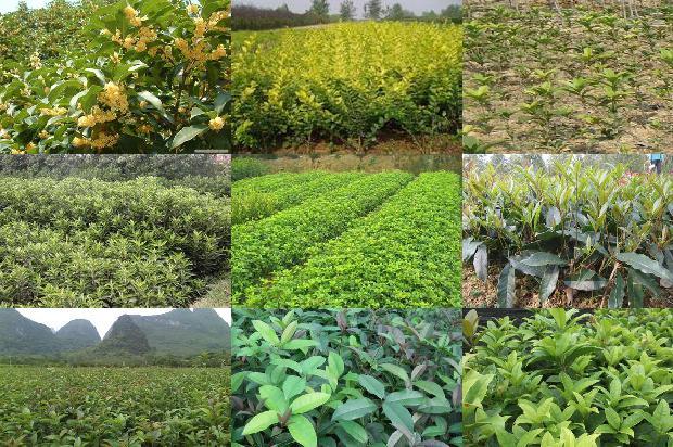 6-9月四季桂,叶子对生,多呈椭圆或长椭圆形,叶面光滑,革质,叶边缘有锯齿;秋季开花,花簇生于叶腋,花冠分裂至基乳,有乳白、黄、橙红等色,极芳香。